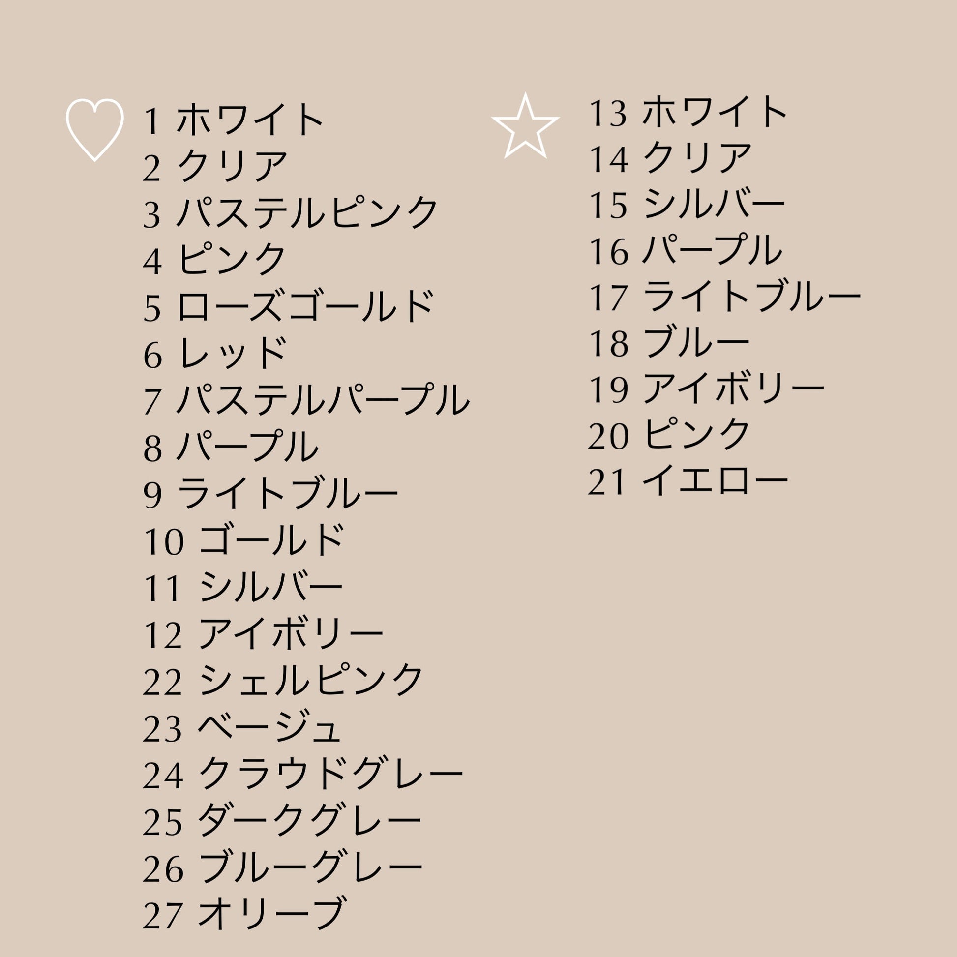 1 ホワイト 2クリア 3パステルピンク 4ピンク 5ローズゴールド 6レッド